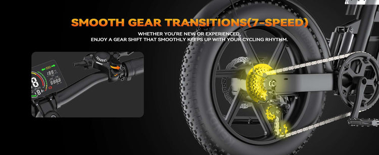 Command and Confidence: Maintain total control in all conditions. The dual hydraulic disc brakes (front and rear) offer precise, fade-resistant stopping power. Coupled with the intuitive 7-speed gear system, you have perfect command over your speed and power delivery for any riding scenario.