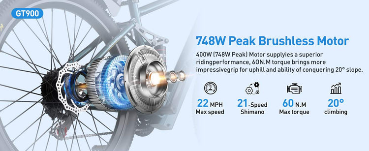• Effortless Climbing: With a peak power of 748W, this bike laughs at steep hills and strong headwinds. You’ll maintain speed and momentum when you need it most.