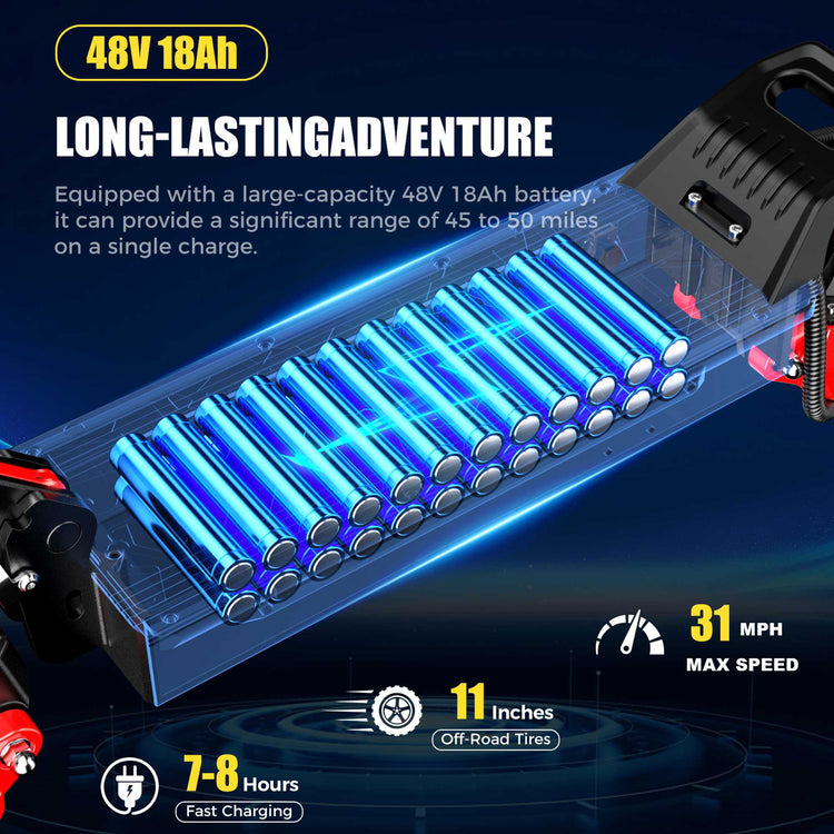 Battery: 48V 18Ah Lithium-Ion