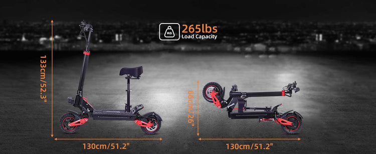 Designed for your on-the-go lifestyle, the scooter features an intuitive one-step folding mechanism. In seconds, it collapses into a compact size that fits easily on public transit, under your office desk, or in the trunk of your car. Despite its powerhouse performance, it remains portable and supports riders up to 265 lbs.